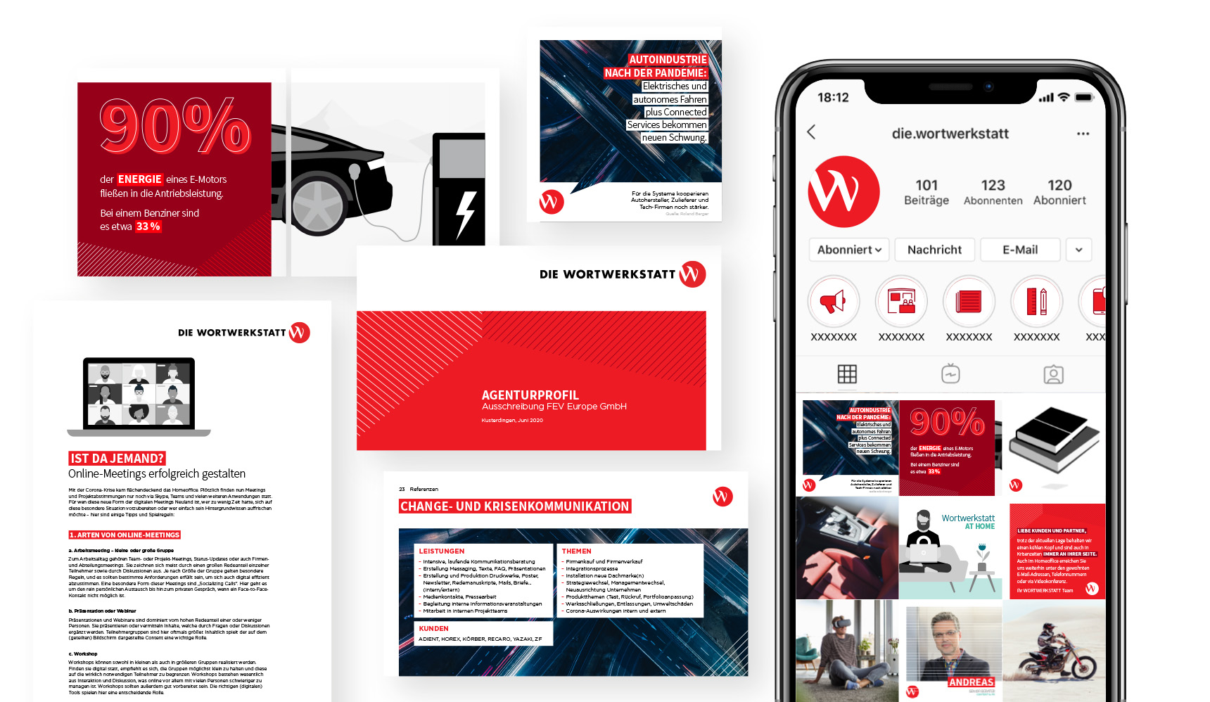Um ein einheitliches Erscheinungsbild im Online-Bereich zu schaffen, hat mich die Wortwerkstatt beauftragt einen Styleguide für den digitalen Bereich zu konzipieren. In diesen Guide flossen unter anderem Themen wie die Verwendung der Corporate Farben, der Bildsprache und -optik und Aufbau und Verwendung des von mir entwickelten Designelements. Um auch einen einheitlichen Look & Feel vorzugeben, wurden verschiedene Werbemittel wie Social Media Posts, Whitepapers oder PPT Templates erstellt.